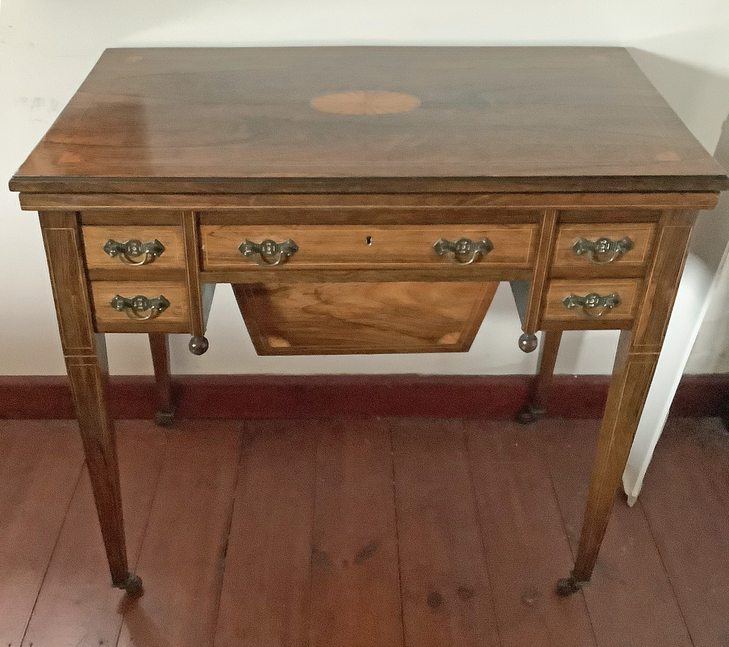 A fine quality early 20th century card and work table in Rosewood and Satinwood