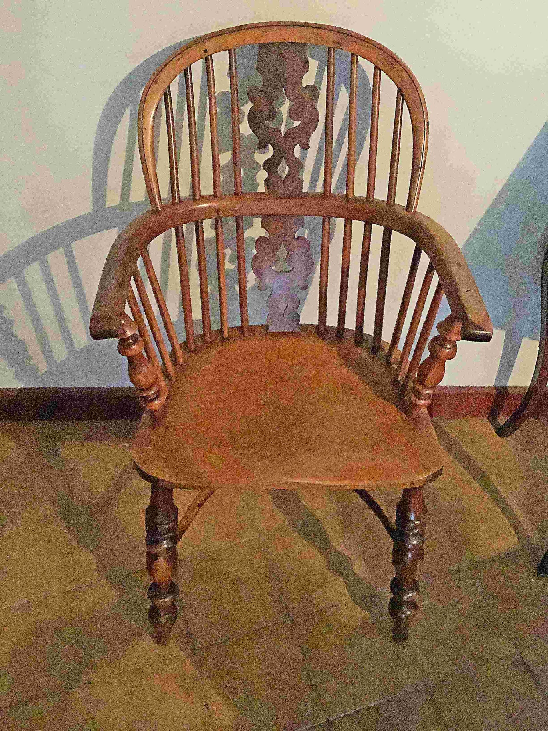 A good 19th century Windsor chair in yew with an elm seat A lovely feature are the Shepherds Crook arms